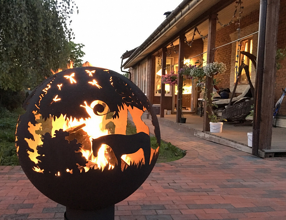 Очаг шар с лазерной резкой Firecup Ежик в тумане