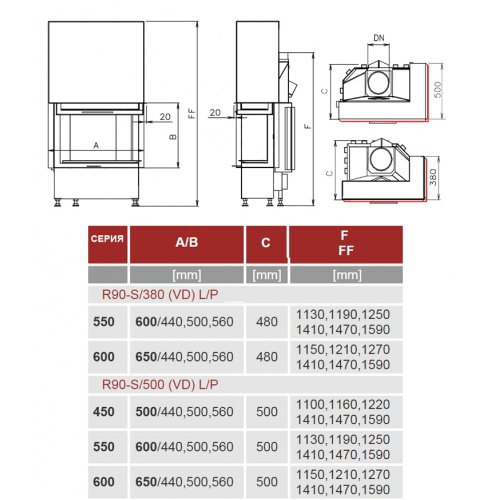 Каминная топка Kobok Corner 600 VD R90-S/380 L/P