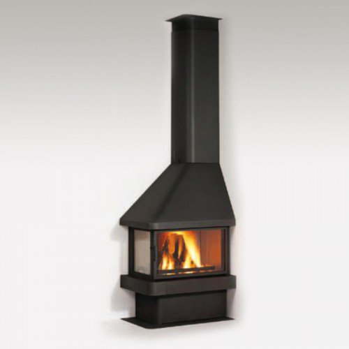 Отопительный камин для пристенно-углового монтажа. Такой камин займет достойное место в загородном доме. Дверь и боковая стенка из стеклокерамики, что значительно увеличивает вид на огонь. Внутренние стенки очага облицованы огнепрочным материалом. Система самоочистки стекла. Экономичный расход дров.