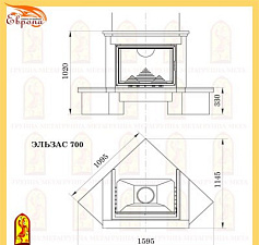 Двухсторонняя каминная топка с прямым стеклом. Топочная камера футерована шамотом. Подъёмный механизм двери (система Easy-Lift) с одной стороны. С другой стороны дверца откидывается для чистки.