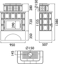 Дровяная печь Kaledonie используется для отопления загородных домов с помощью установки "водяной рубашки". Для этой чешской печи характерно быстрое разжигание и долгое сохранение тепла благодаря кафельной облицовке. Небольшая мощность камеры сгорания (4,3 кВт) позволит сэкономить на дровах, при этом водяной контур может отапливать достаточно большую площадь (180 куб.м). Печь имеет компактную форму прямоугольника, и занимает не много места. Печи бывают одноцветными, или с комбинациями цветов: серый/песчаный, пикассо/песчаный, пикассо/табак.